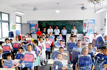 慶興神鋼小學(xué)捐贈(zèng)新生書(shū)包