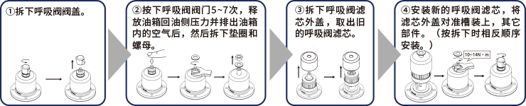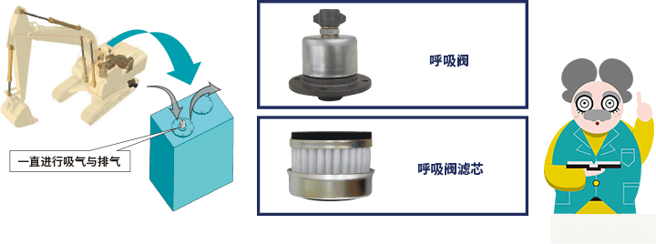 如果吸閥變臟,會引起堵塞,導(dǎo)致無法進行吸氣與排氣。如果無法進行吸氣與排氣,呼吸閥不會發(fā)揮作用,會引起液壓系統(tǒng)故障。因此需要檢查呼吸閥,定期更換呼吸閥濾芯,這點非常重要。